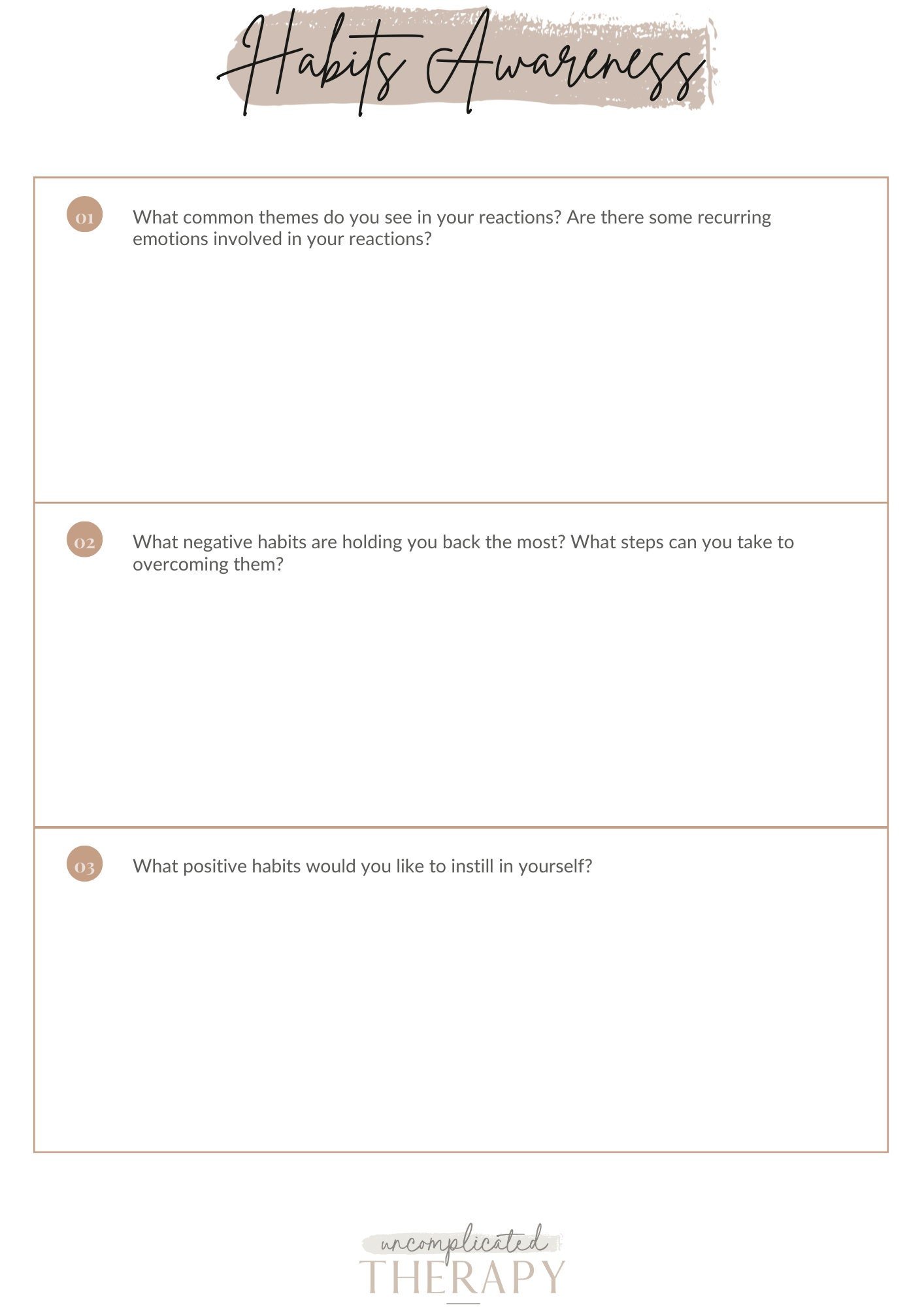 Habit Awareness Worksheets (2) For Therapists, Counselors, Coaches & Clients